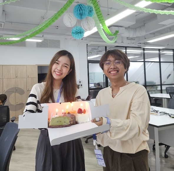 พอเริ่มจะปรับตัวเข้ากับทีมได้ปุ๊บ ก็ต้องมาทำงานแบบ WFH เป็นครั้งแรกในชีวิต จากคนที่ไม่เคยทำงานอยู่บ้านมาก่อน ต้องนั่งจ้องจอทั้งวันก็แอบเบื่อเหมือนกันเลยคอยนับวันรอพฤหัสไว้เสมอ เพราะจะได้เข้าออฟฟิศ! ได้ออกไปหาอะไรอร่อย ๆ กินกับทีมและจบลงที่ “ฮาจิบัง” ทุกที (กินจนมีบัตรสมาชิกแล้วนะ!)