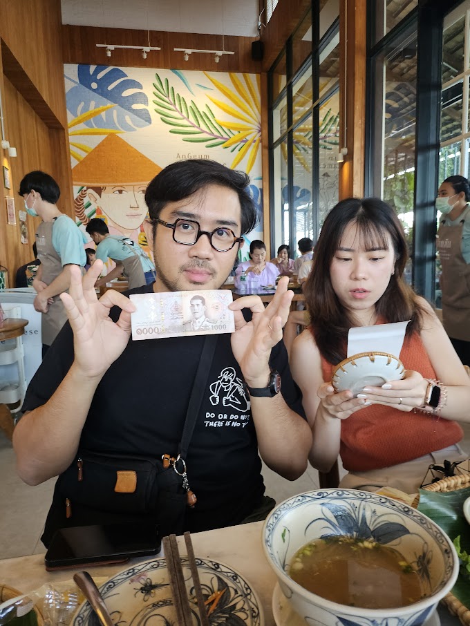 ทริปอยุธยา ไฮไลต์แน่นอนว่าจะต้องเป็นการไปไหว้พระ ขอพร ไหว้พระ ทำบงทำบุญ แต่เหมือนผลบุญทำงานทันที คุณพี่เค้าคว้าแบงก์พันจากไหนก็ไม่รู้ มาแปรเปลี่ยนเป็นค่าอาหารเวียดนามระดับมิชลินให้แก่ทีม ได้อิ่มท้อง คอนเท้นต์วิ่งเข้าหาเกินไปป้ะ